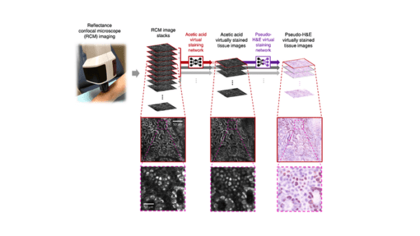Researchers used deep learning framework to transform microscopy images of intact skin into histochemically stained sections imaged on microscope slides.
